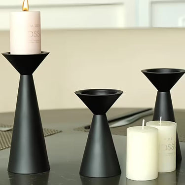 Introduce a touch of contemporary elegance to your home with this stunning Set of 3 Matte Black Candle Holders, exclusively available at Shining Store. Crafted with a sophisticated geometric silhouette, these candle stands feature a striking conical design that blends seamless industrial charm with Nordic simplicity.